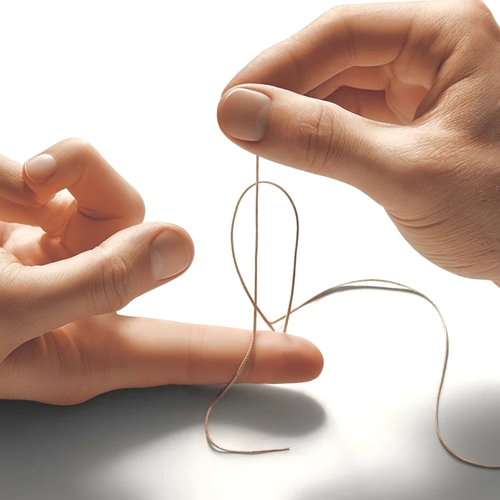測りたい指の最も太い部分に巻きつけて、重なったところで印をつけます。